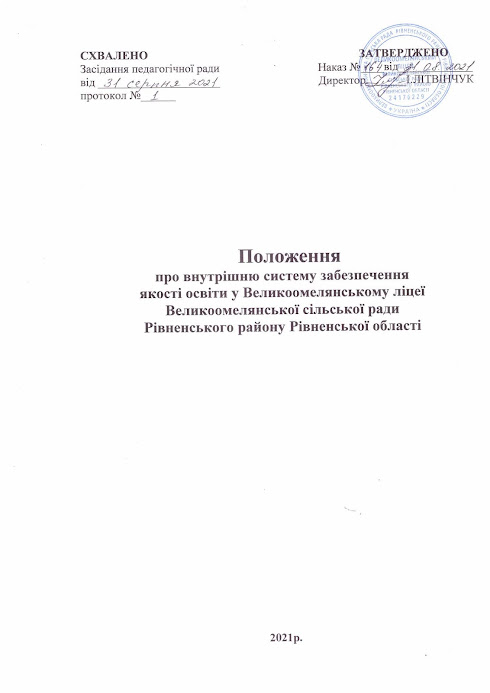 Система забезпечення якості освіти Переглянути за посиланням: Положення про внутрішню систему забезпечення якості освіти у Великоомелянському ліцеї